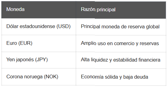 Aunque no siempre se mide estrictamente como “estabilidad”, las siguientes monedas destacan por su desempeño internacional: